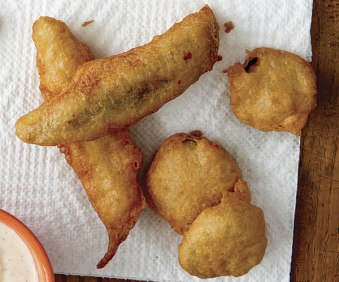 - Put 1 cup of flour in a shallow bowl. In a second bowl, whisk together the remaining 1 cup of flour, the beer, and the cayenne. Let sit for 5 minutes.