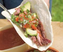 While the steaks are grilling, prepare the pico de gallo. Just before the meat is done, slice the avocado, if using. Remove the meat from the grill and chop or slice it very thinly. Serve with the pico de gallo, the avocado or guacamole, the salsa, and the warm tortillas.